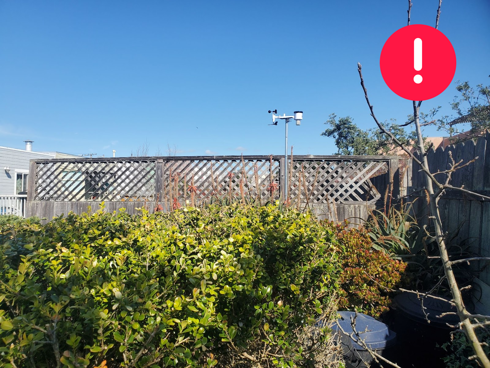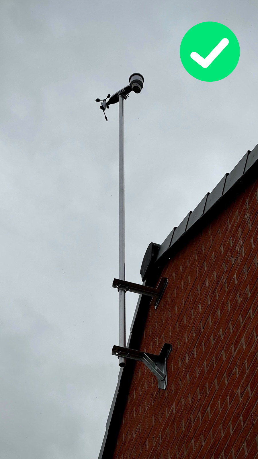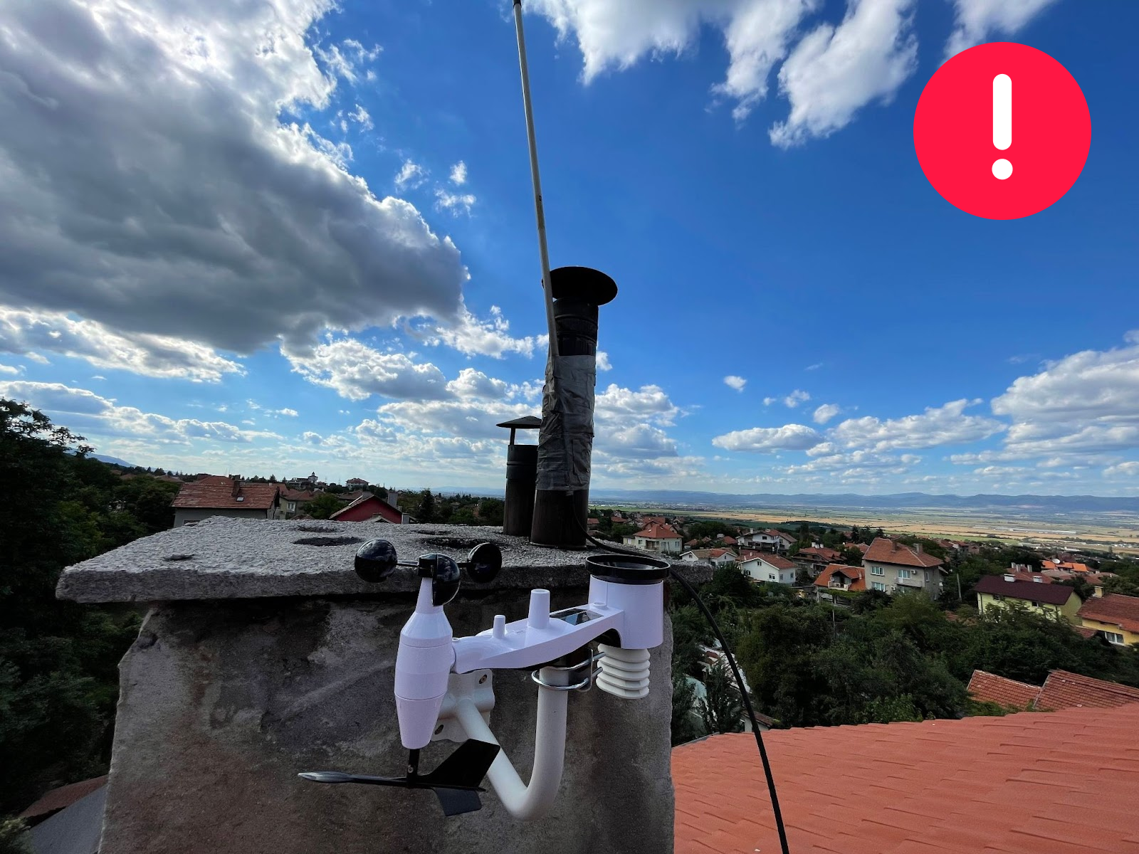 The outdoor sensor should be placed on a higher mast (at least a 2m one) over the wooden structure. If there are higher buildings etc around, the sensor should be moved at the highest possible point (always using a at least 2m mast).