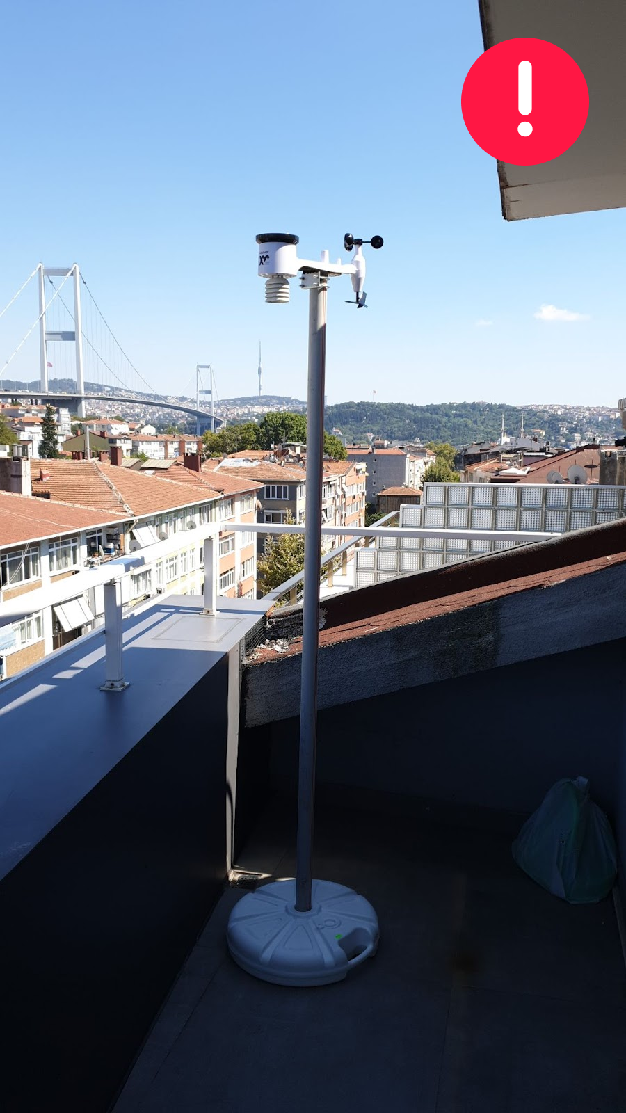 The station has been deployed at a 2.5m mast with a clear horizon with no obstacles. The only obstacle is a house (4-7m height) being located at the east, but it’s 25m away.Thus, the maximum difference of obstacle-station level heights is 7-2.5=4.5m, which means that the distance is at least >5 times the height of the obstacle. Although the station is considered as well deployed, optionally would be placed on a 5m mast to completely follow the WMO criteria.