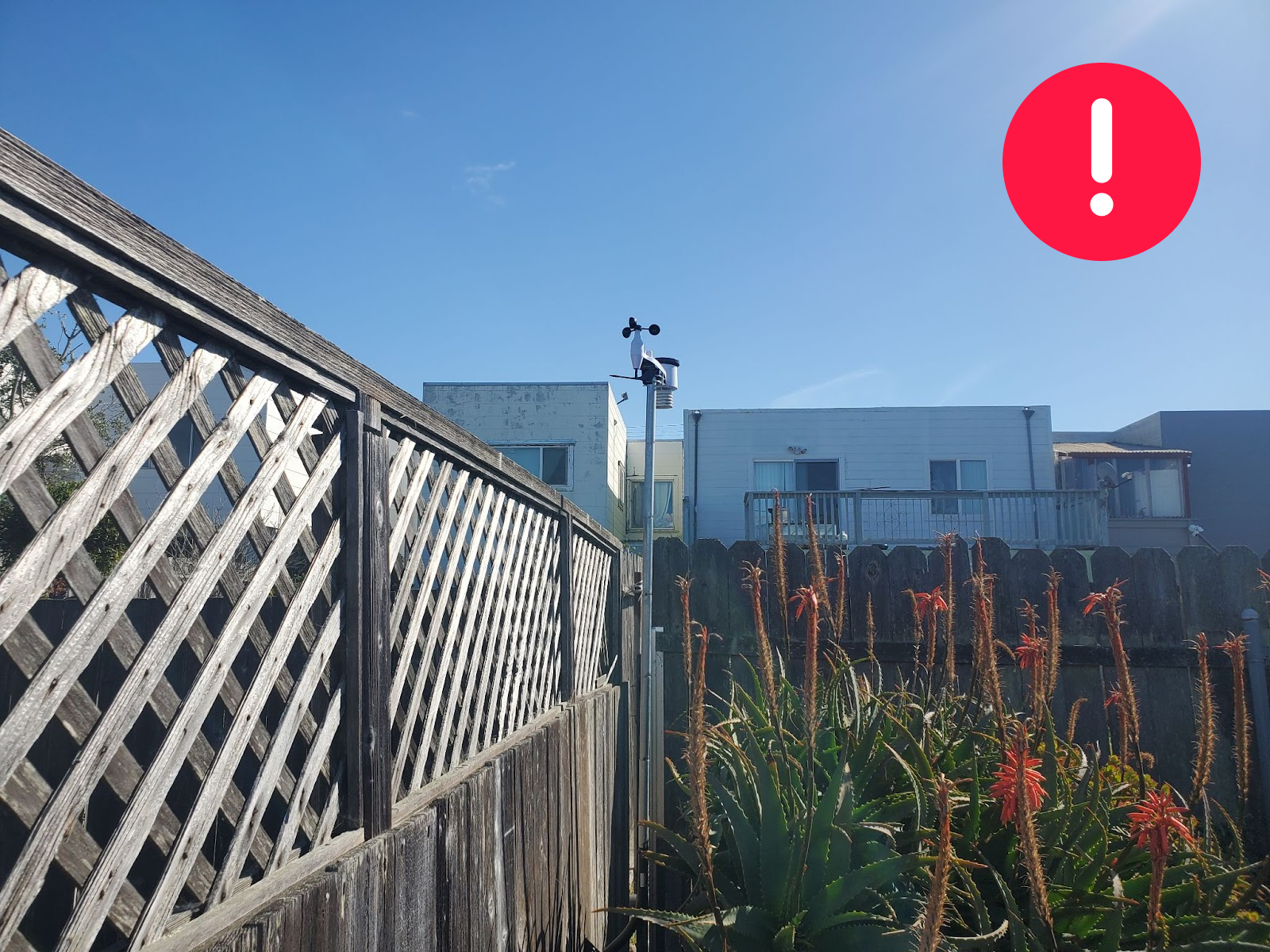 The station is placed just a few tens of centimetres over a wooden structure. From this photo it is unknown if there are any obstacles at the north-east-south.