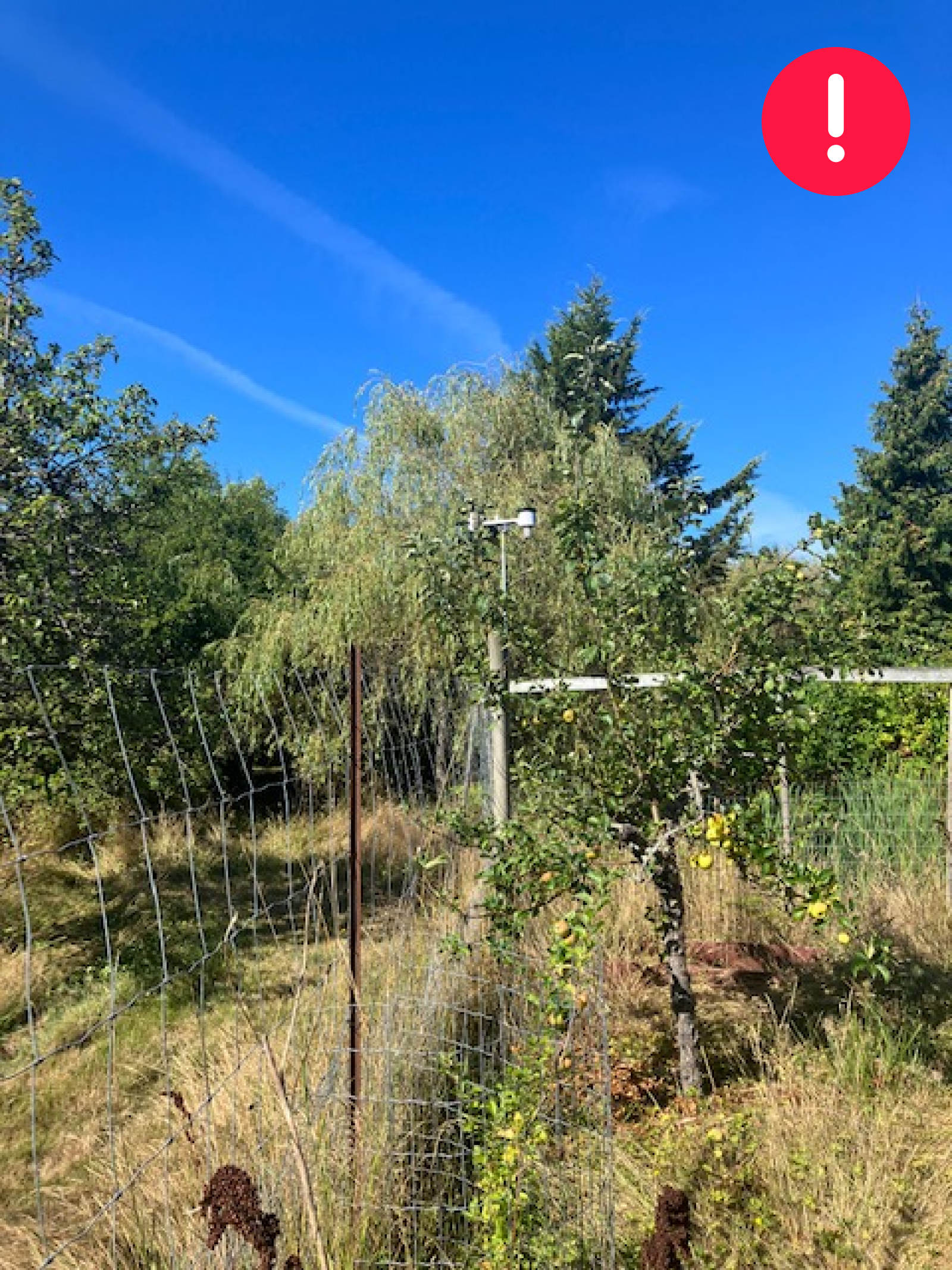 The station has not been deployed at the highest possible place because there are higher buildings around. It is placed on a fence being only ~1m higher from it and there are objects (like the bush) that are closer than 2m, which is the smallest allowed distance between the sensors and any horizontal surface under the level of the outdoor sensor.